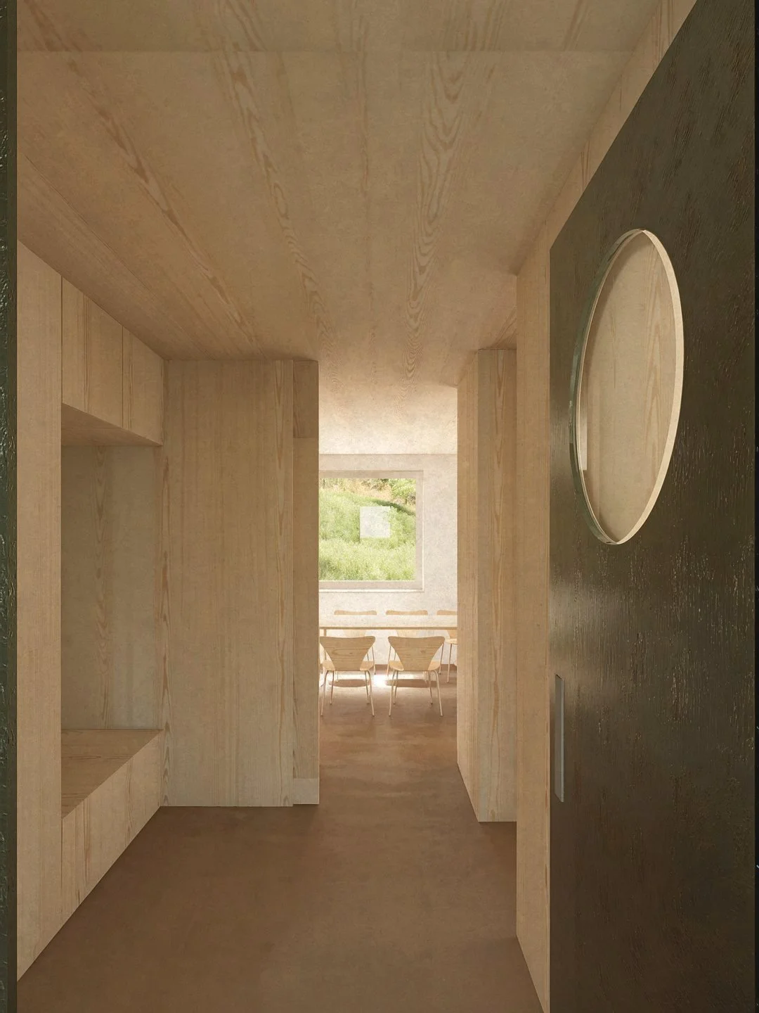 Ein Weiler oberhalb von Wagen soll um zwei Häuser erweitert werden – die nächste Generation der Familie möchte den Ort neu beleben. Doch der Bauplatz fordert den sensiblen Umgang mit dem Bestand. Verdichten im Dialog zum historischen Ensemble. Die zwei neuen Einzelbauten liegen locker aufgereiht am Hang und bilden mit dem Bestand eine für den Ort typische haufenförmige Hofgruppe. Sie weisen eine kleine Grundfläche auf und ein schlichtes Erscheinungsbild. Der materielle Ausdruck ist geprägt von der unbehandelten Fichtenfassade und dem Sockel in Sichtbeton.